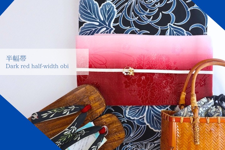 このエンジ色のグラデーションの半巾帯を加えてみてください。