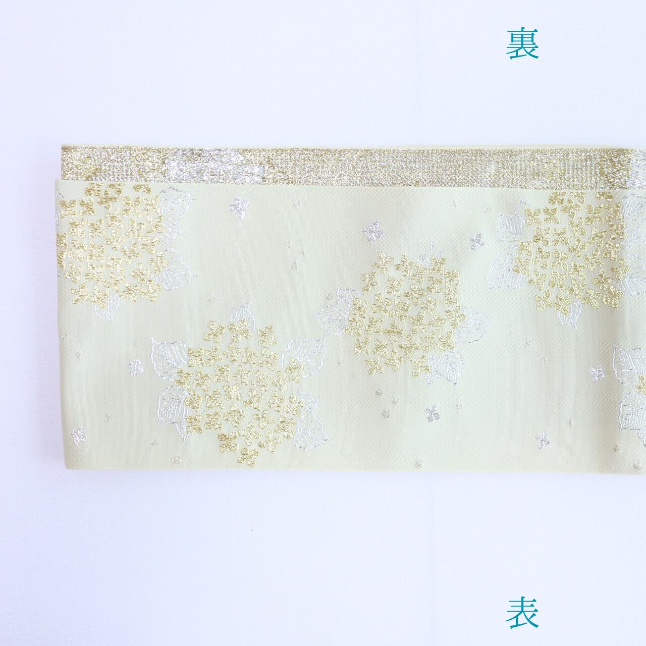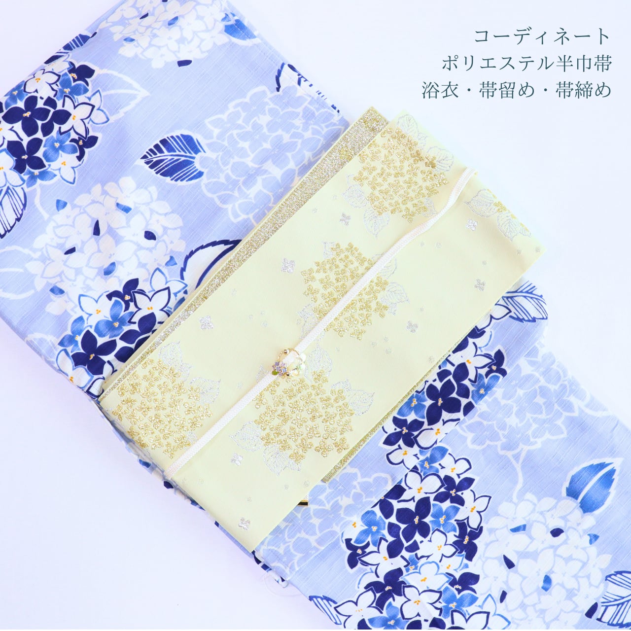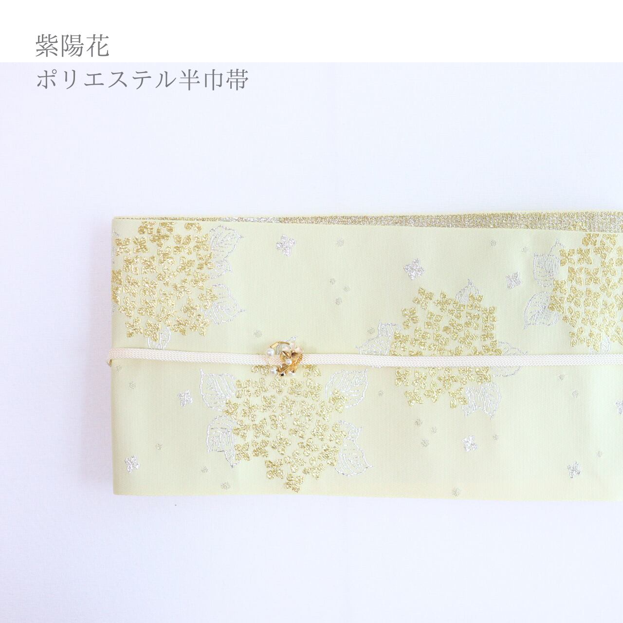 【半巾帯】【ゆかた用半巾帯】【ポリエステル】紫陽花 淡いパステル黄色 長さ4.0m