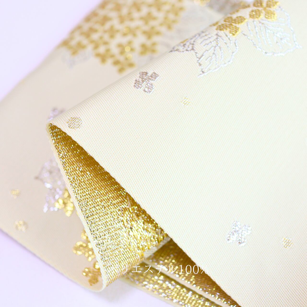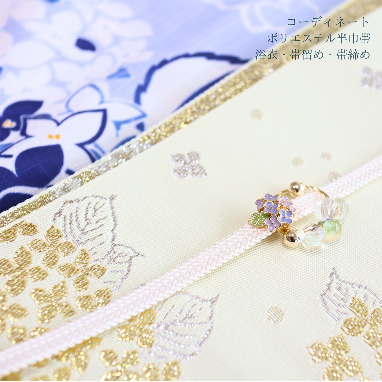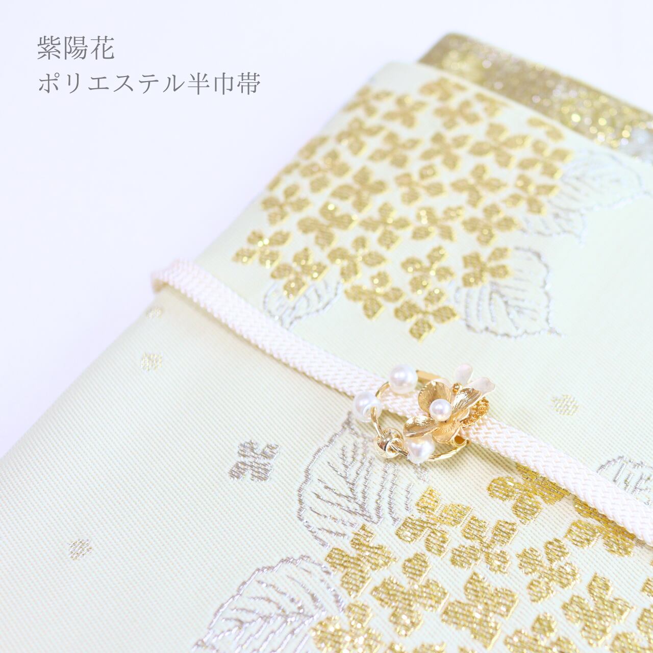 【半巾帯】【ゆかた用半巾帯】【ポリエステル】紫陽花 淡いパステル黄色 長さ4.0m