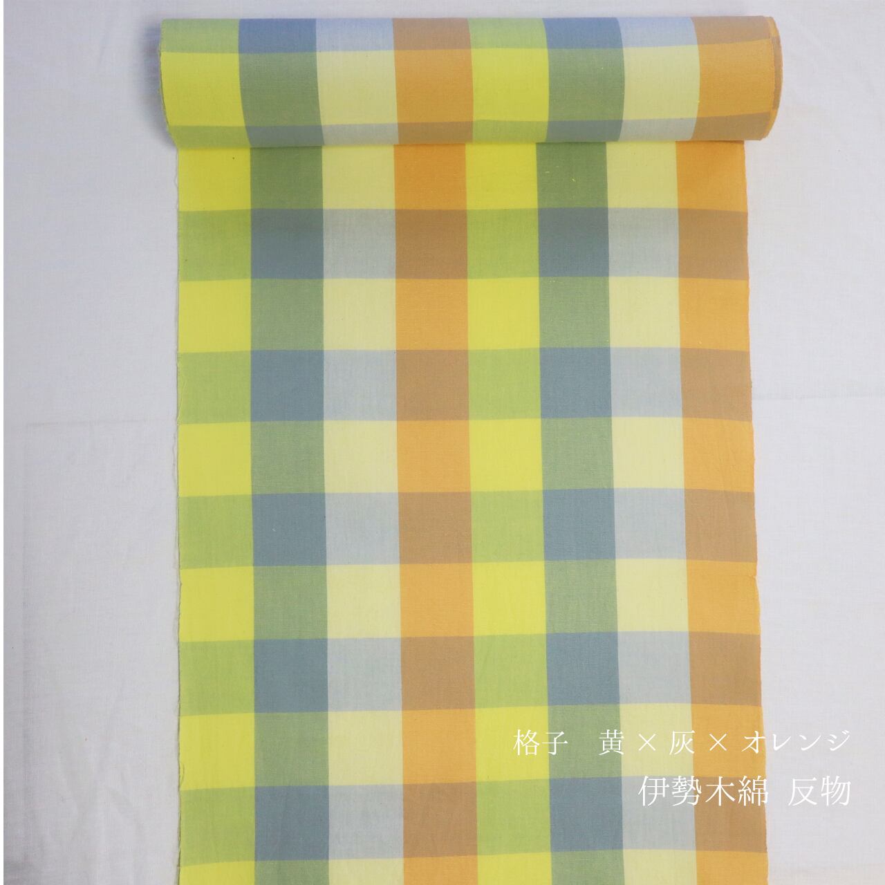 【きもの反物】木綿 伊勢木綿 黄×灰×オレンジ 反物