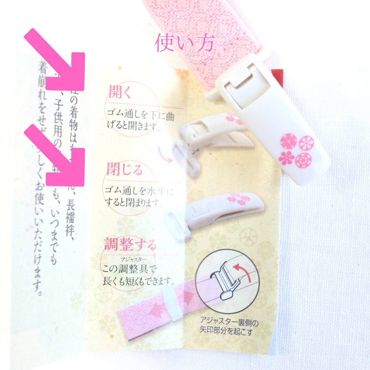 ゴムの部分も七宝の模様と淡いピンク色がかわいいです