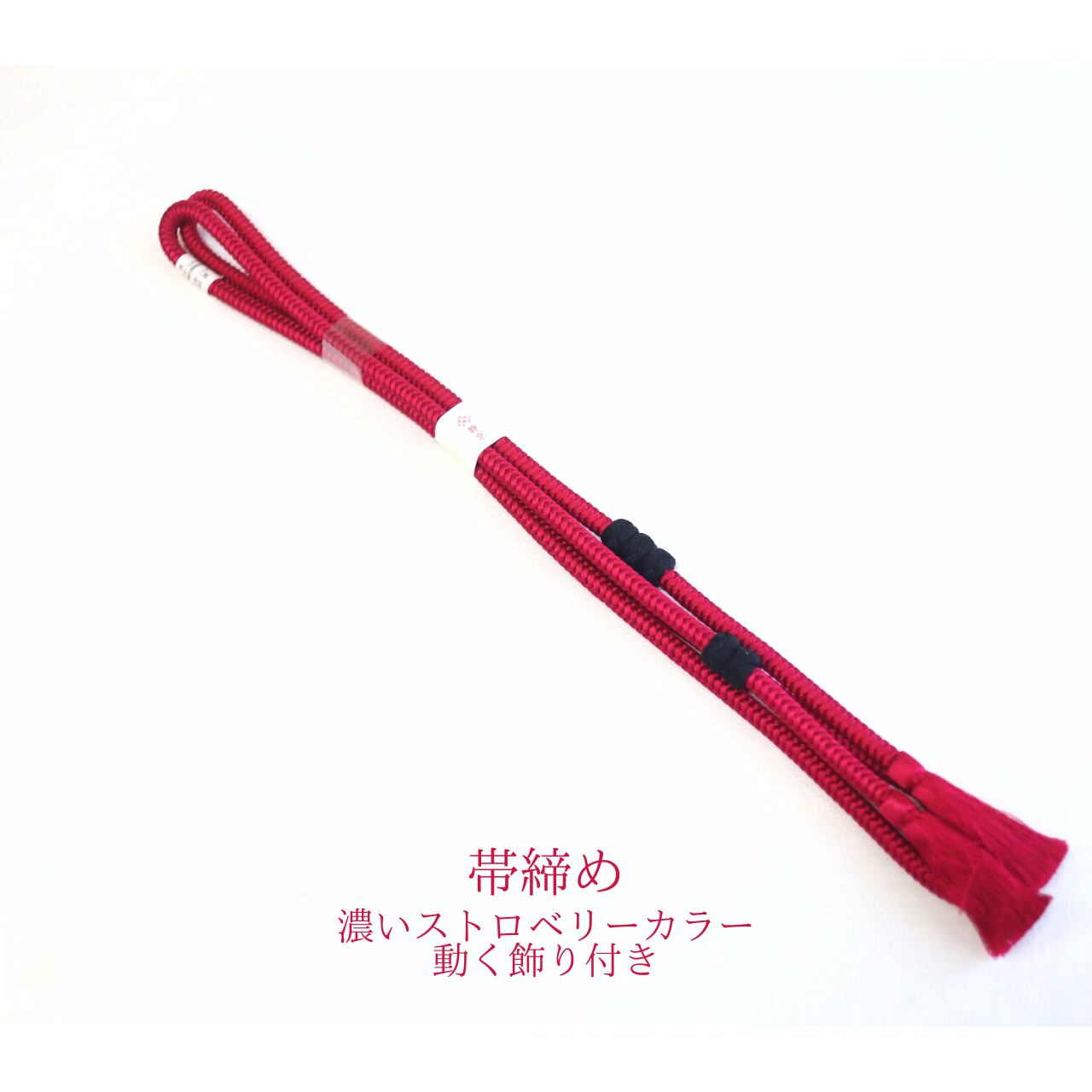 【帯締め】【 飾り付き】濃いストロベリーカラー 動く飾り付き 帯締め