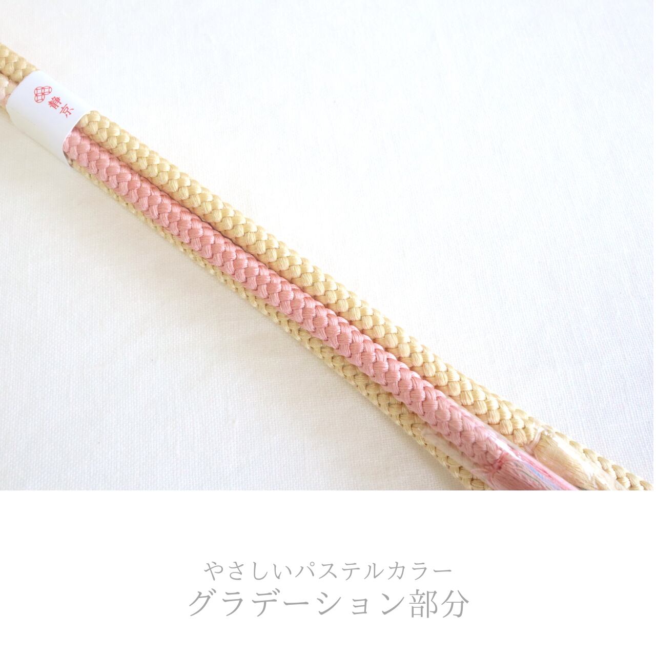 【帯締め】【組紐】 淡いパステルカラー 淡いベージュ色×淡いピンク色 カラフル房の帯締め