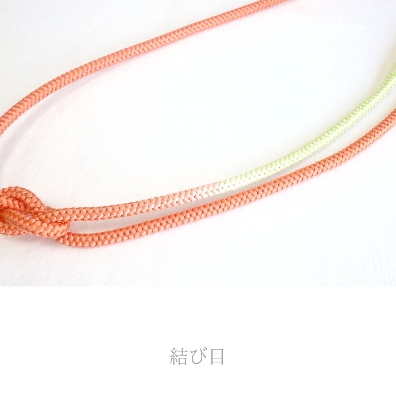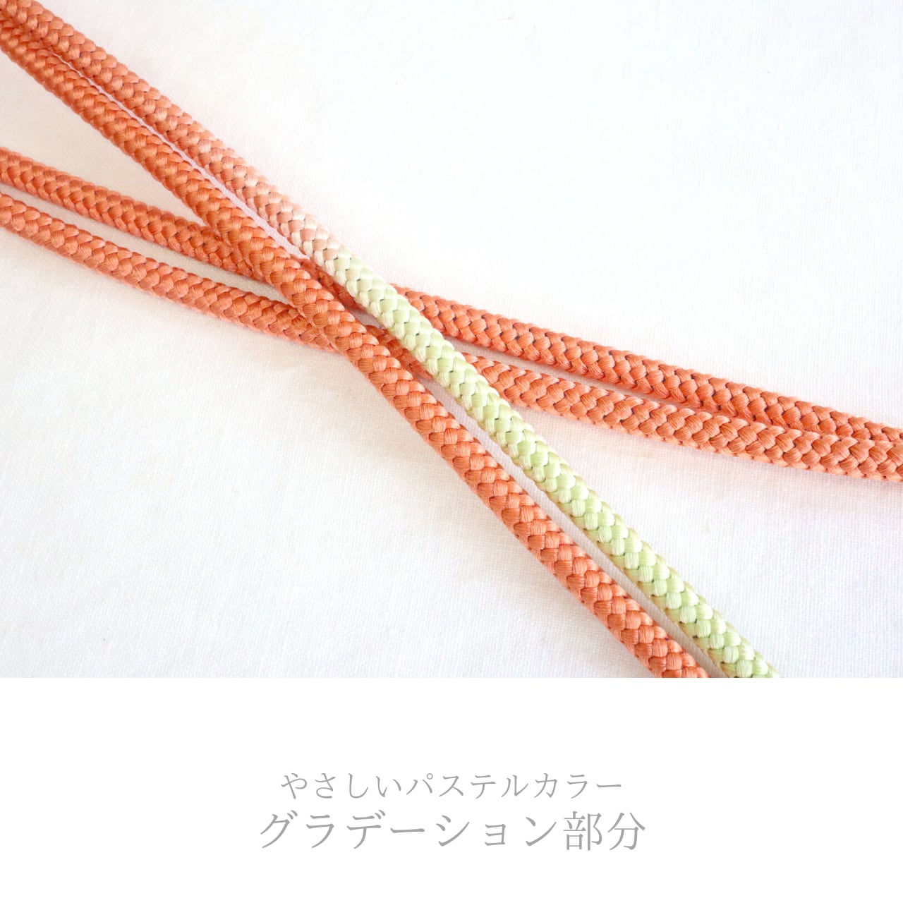 【帯締め】【組紐】 淡いパステルカラー 淡いオレンジ ×ライムグリーン色 カラフル房の帯締め